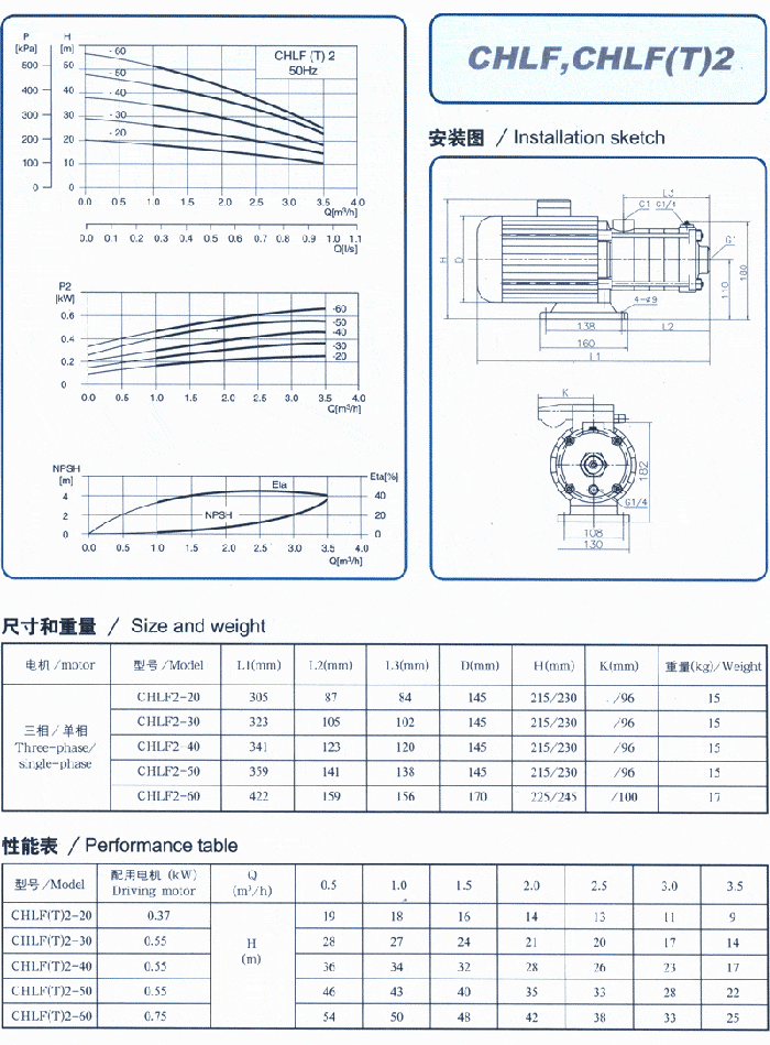CHL,CHLK和CHLF(T)輕型臥式多級離心泵采用了免修機械密封。泵的過流部件均采用不銹鋼材料(304或316)制成,具有低噪音,耐輕腐蝕,外形美觀、體積小、重量輕、使用壽命長等特點。