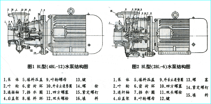 BL型泵系單級單吸懸臂式直連離心清水泵,此型泵是根據BA型泵基礎上對結構改進,具有外形小、重量輕、結構簡單、安裝方便等特點,可供輸送清水及物理化學性質類似于水的液體之用。
